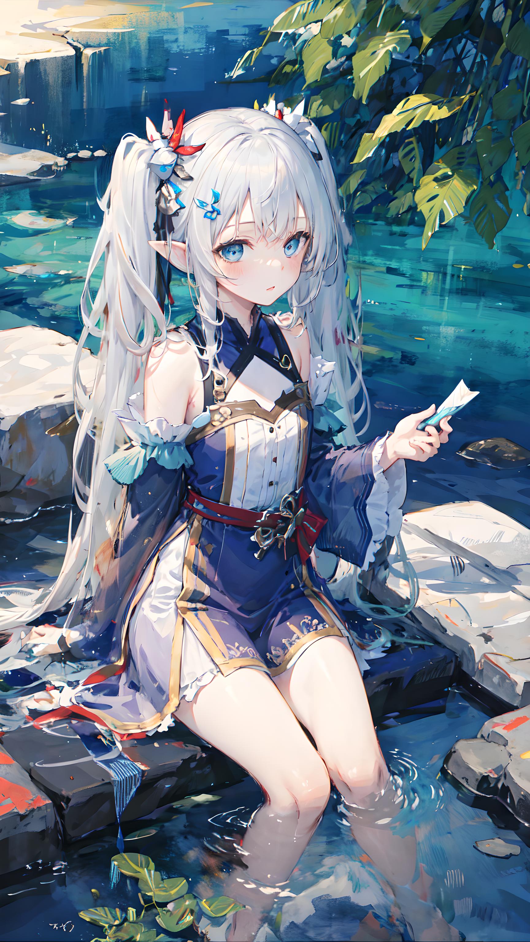银发蓝瞳精灵美少女!