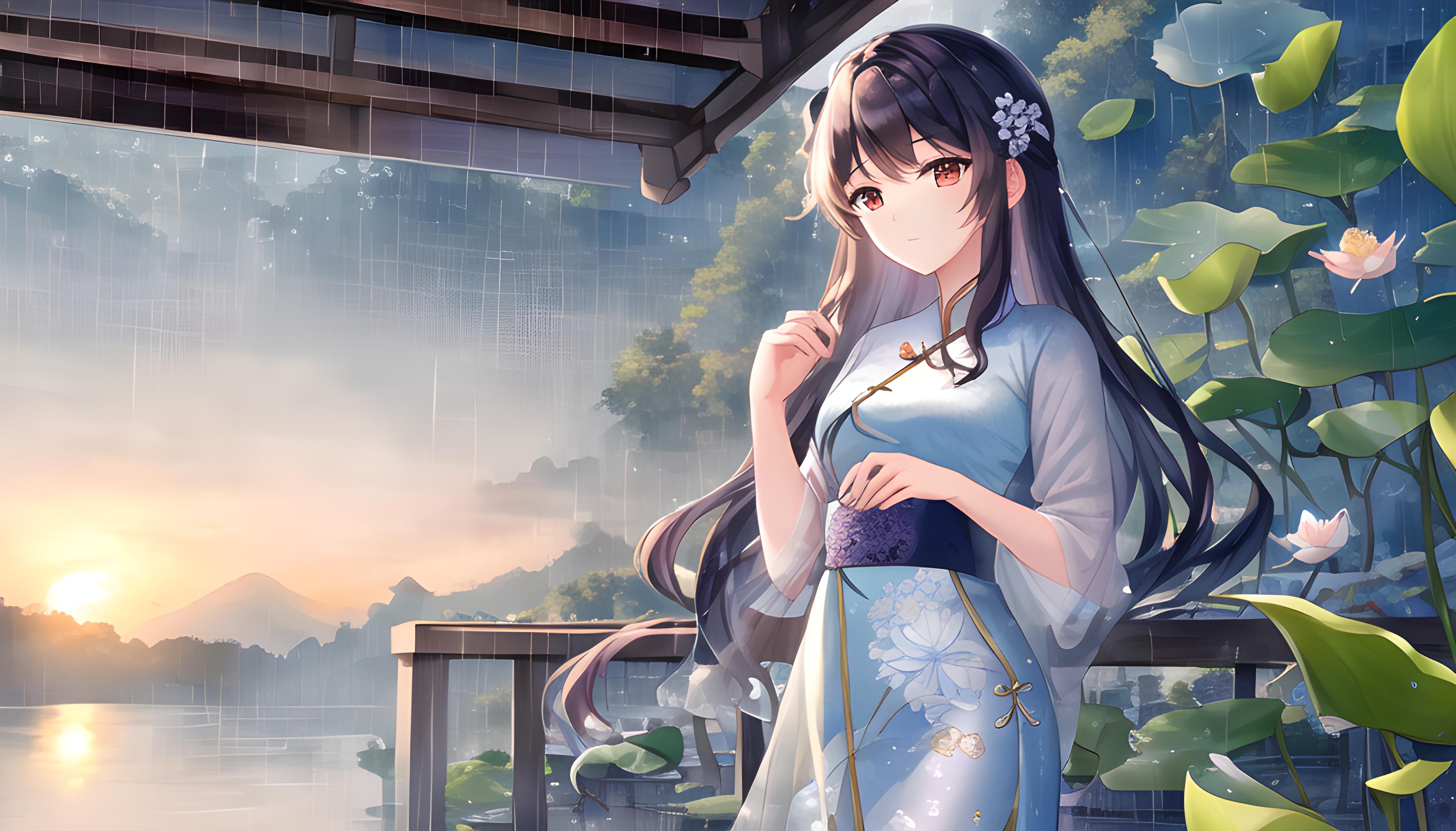 烟雨江南旗袍少女,壁纸