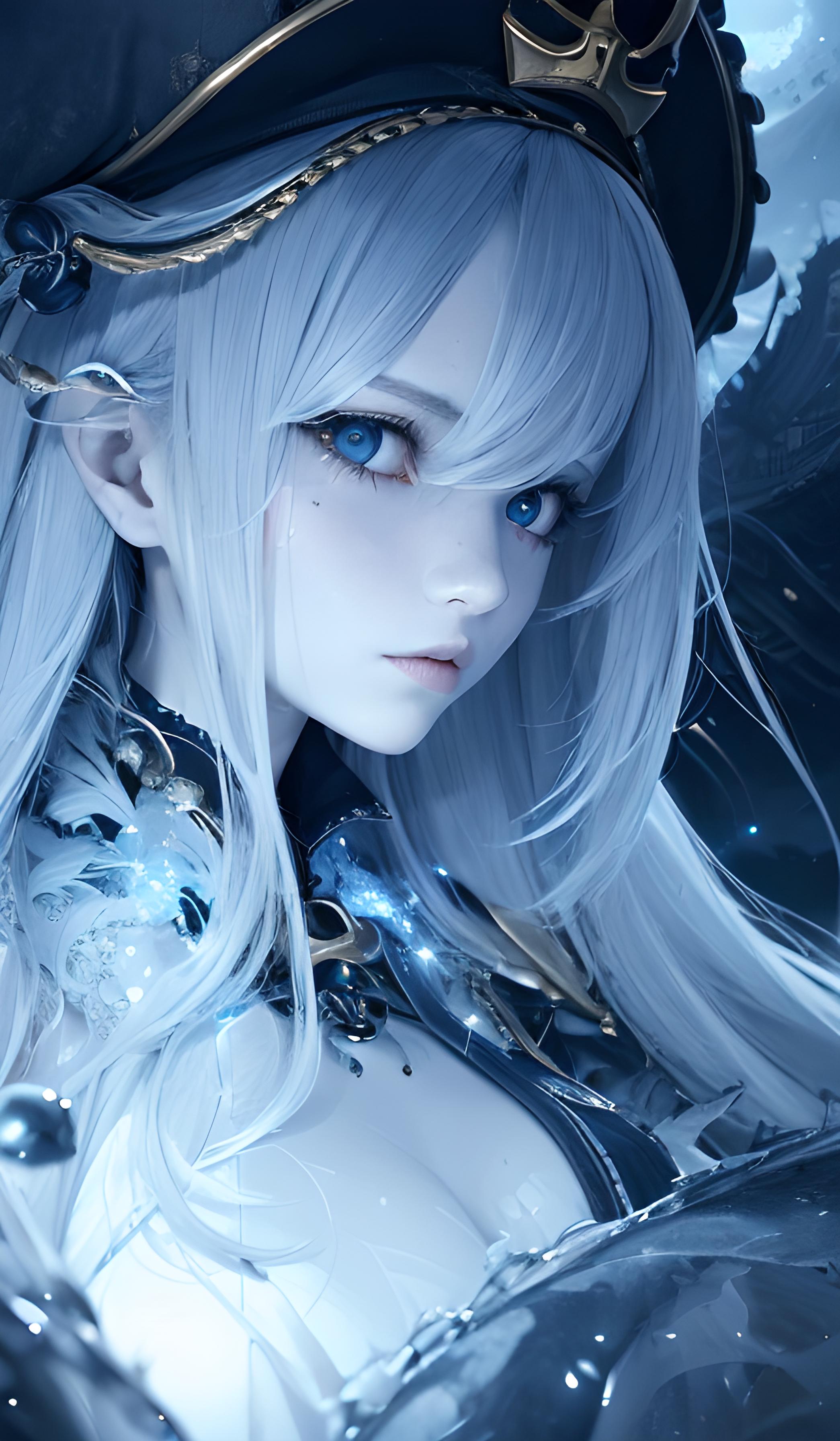 absurdres, highres, ultra detailed,(1girl: 1.3,精致漂亮的五官),Create an image of a ghost ship captain, with a spectral appearance, commanding a crew of spirits and navigating the mysterious seas.